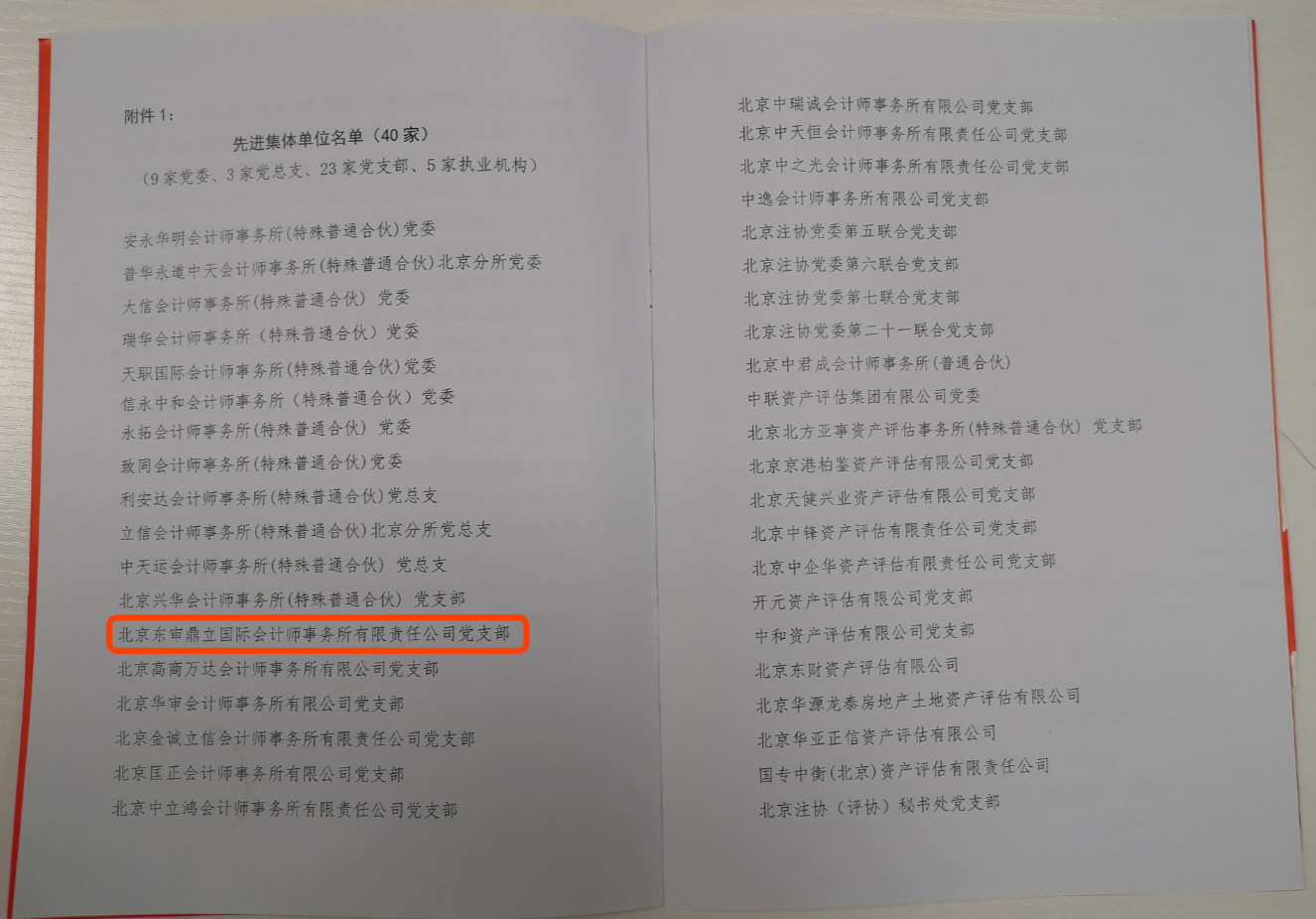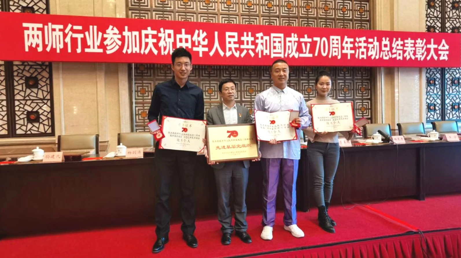 2019年12月20日,两师行业参加庆祝国庆70周年总结表彰大会在北京会议中心举行。东审作为先进集体和优秀个人受到了表彰:北京东审鼎立国际会计师事务所有限责任公司党支部荣获先进基层党组织荣誉称号;崔军胜老师荣获 “参加庆祝中华人民共和国成立70周年群众游行活动优秀个人”荣誉称号;来自国图区审计部程慧瑶和培训中心王兆籴荣获“参加庆祝中华人民共和国成立70周年‘我和我的祖国’文艺汇演参加演出优秀个人”荣誉称号。这是全体东审人的骄傲,更是行业党委对我们工作的肯定。更加激发了全体东审人奋进新时代谱写新篇章,再为党旗增辉、为国旗添彩的信心与力量。