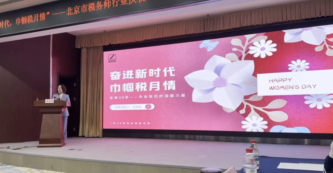 三月春光暖,半边天朗晴。在“三八”国际劳动妇女节到来之际,北京审信东审税务师事务所有限责任公司受邀参加“奋进新时代,巾帼税月情”庆祝“三八”国际劳动妇女节暨等级事务所女性所长座谈会。东审养老金合伙人王洪玉、李勤出席本次盛会,王洪玉作为代表登台发言,以一个个温情的东审故事,向行业同仁展示了东审独有的文化温度。